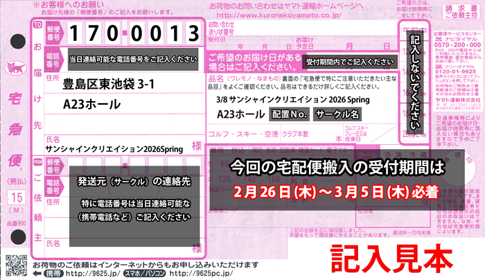 - 受付期間は2月26日(木)~ 3月5日(木)必着(ヤマト運輸東池袋中央センターへの到着日)です。